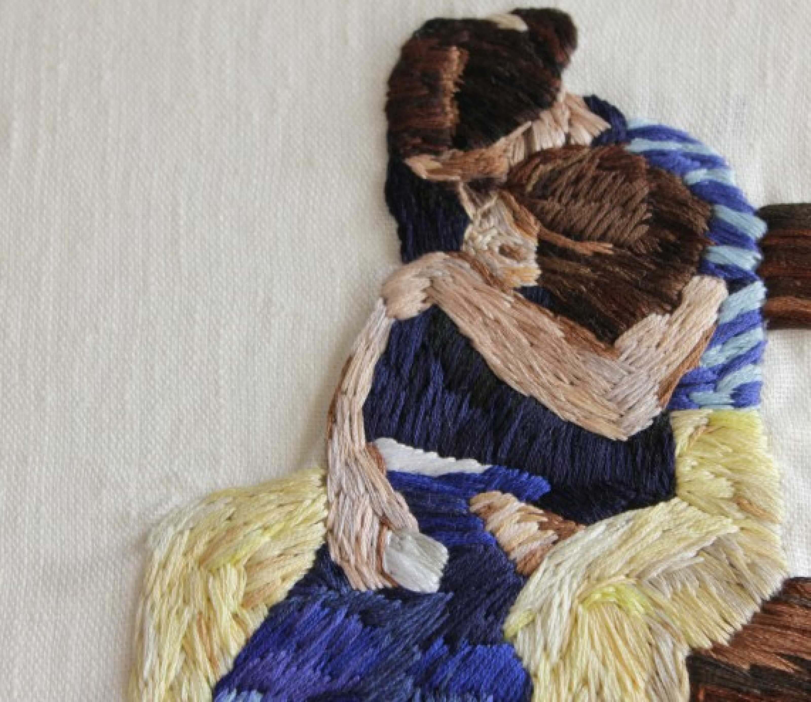 Cécile Davidovici est une brodeuse hors-norme. Ses teintes réalistes ne viennent pas du mélange de pigments, mais bien des superpositions des couleurs du coton.