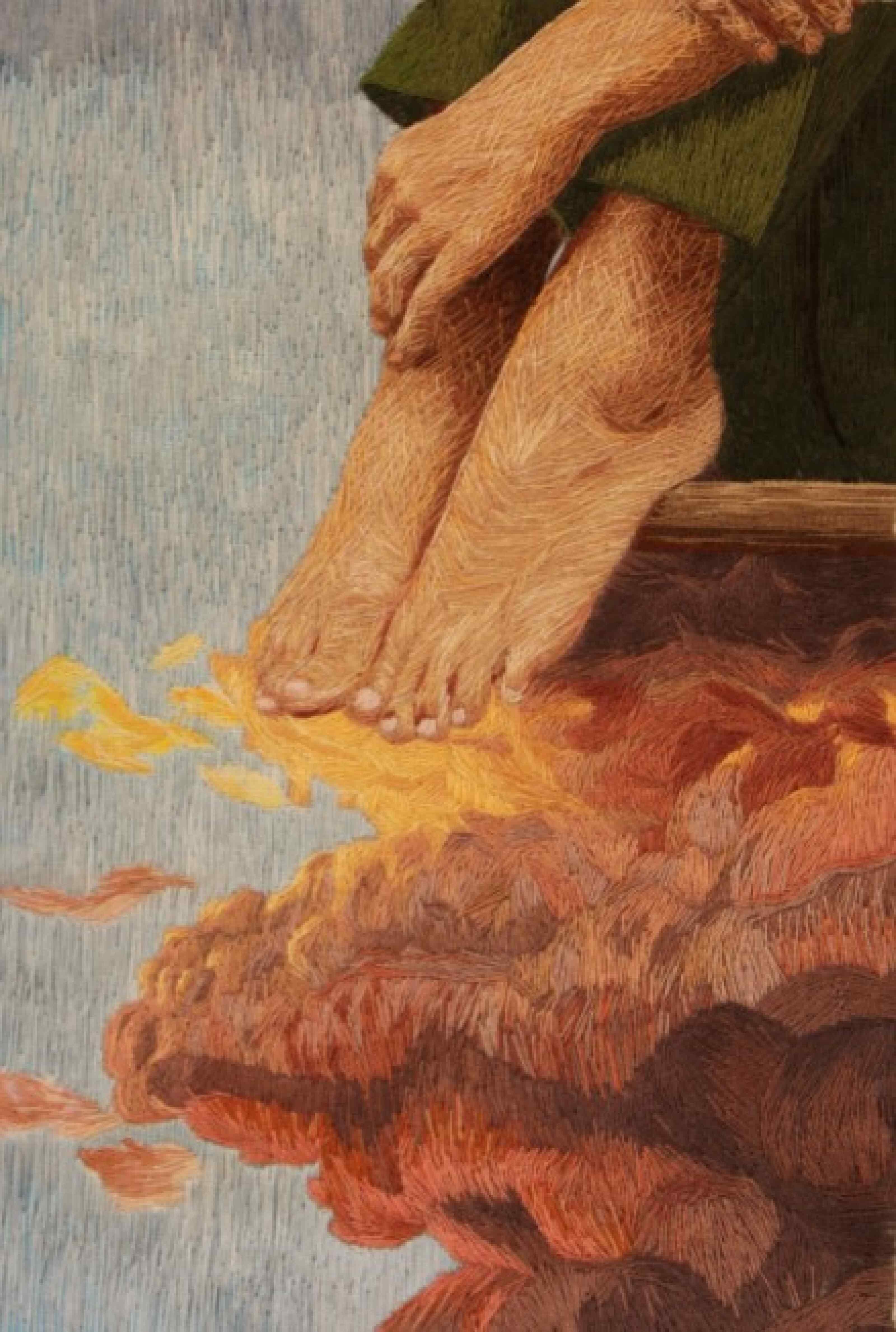Mais les œuvres de Cécile Davidovici sont aussi engagées : sa série La Saison des feux est motivée par les grands feux californien de 2020. Représentant des matières textiles en mouvement, dont surgissent parfois une main, ils reposent sur l’idée du pouvoir réparateur de l’art, qui nous permettrait de nous réconcilier avec ce monde que nous détruisons et qui nous expulse en retour.