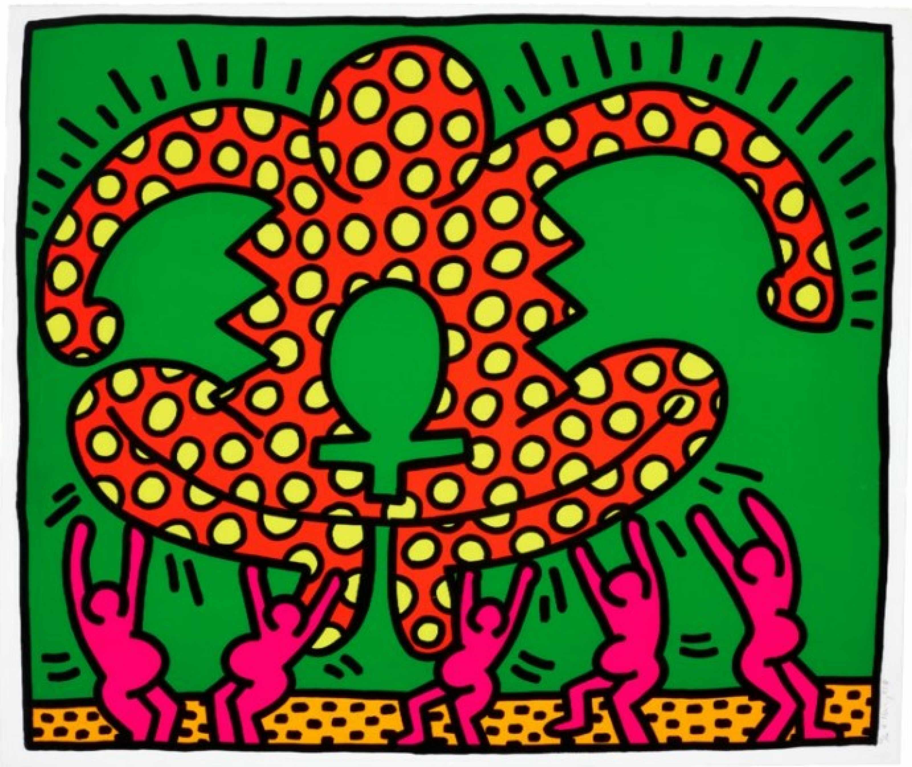Damien Hirst aussi a décroché le gros lot : une des toiles de sa série Cerisiers en fleurs, dernièrement exposée à la Fondation Cartier, fut vendue pour 176 000 dollars. Un autre pop artist était à l’honneur : deux toiles de Keith Haring aux couleurs vivaces, emplies de ses petits personnages caractéristiques, furent achetées pour 50 000 dollars. Un prix qui peut sembler bas, mais qui dépasse les estimations que les deux toiles avaient reçues ! Même cas de figure pour une œuvre de David Hockney représentant une falaise aux couleurs surréalistes, cédée pour 25 000 dollars. Une sculpture de Claes Oldenburg, figurant un verre à cocktail sur le point de se renverser, n’avait été estimée qu’à 7 000 dollars, mais a finalement trouvé acheteur pour 30 000 dollars ! Roy Lichtenstein, Gerhard Richter, Yayoi Kusama… Encore d’autres pontes de l’art contemporain étaient présents à cette vente mémorable, faisant le portrait d’un art contemporain résolument pop, joyeux et éclatant de couleurs.