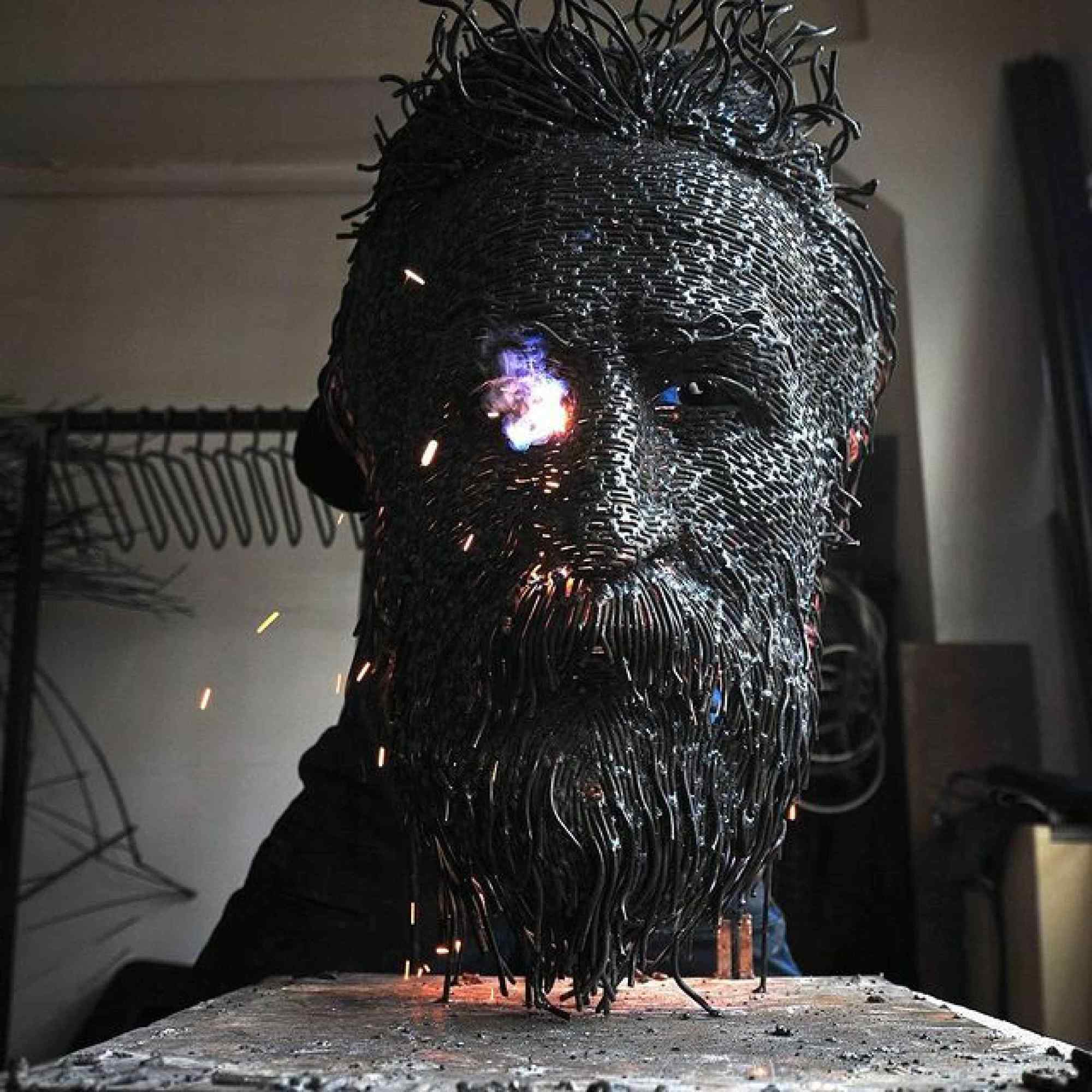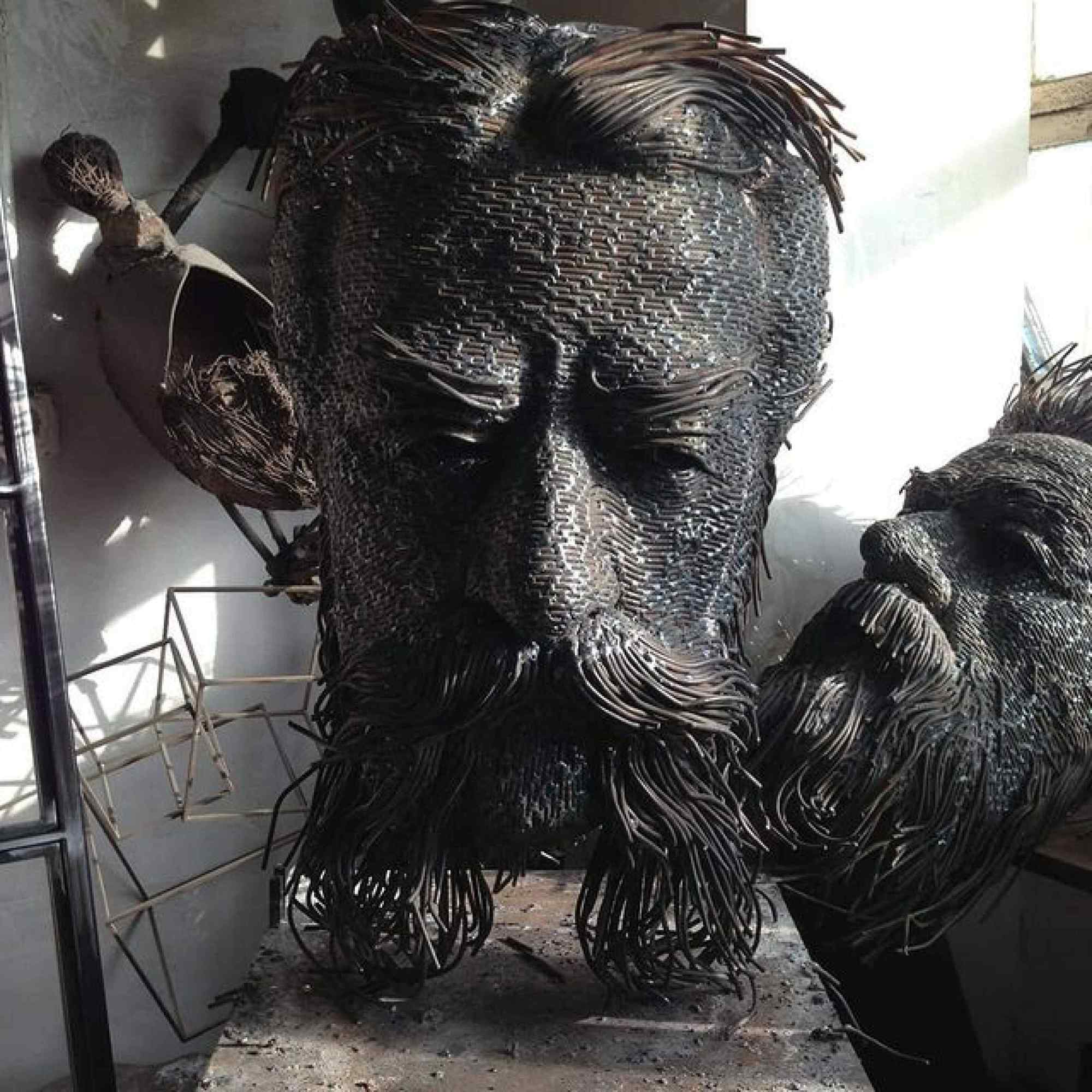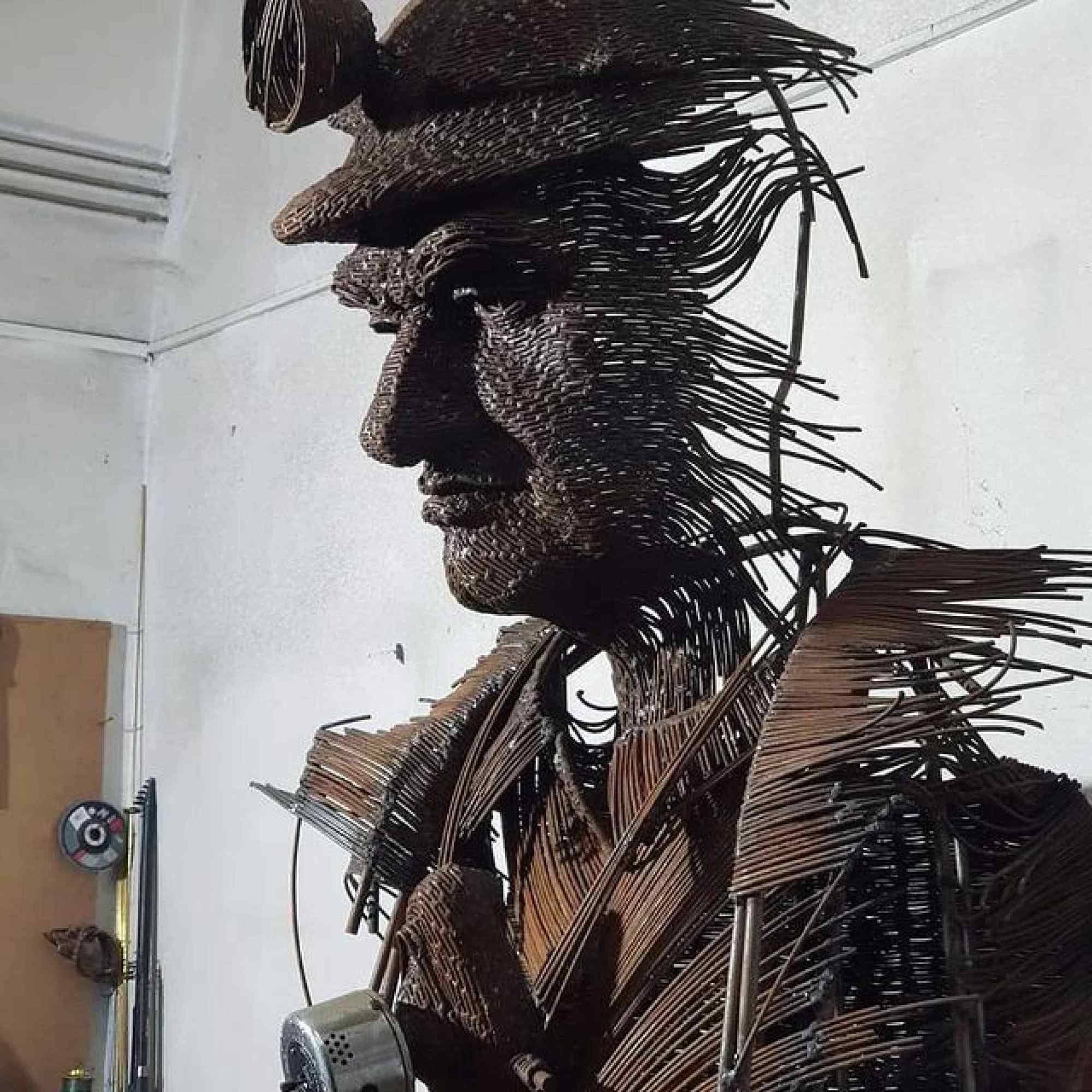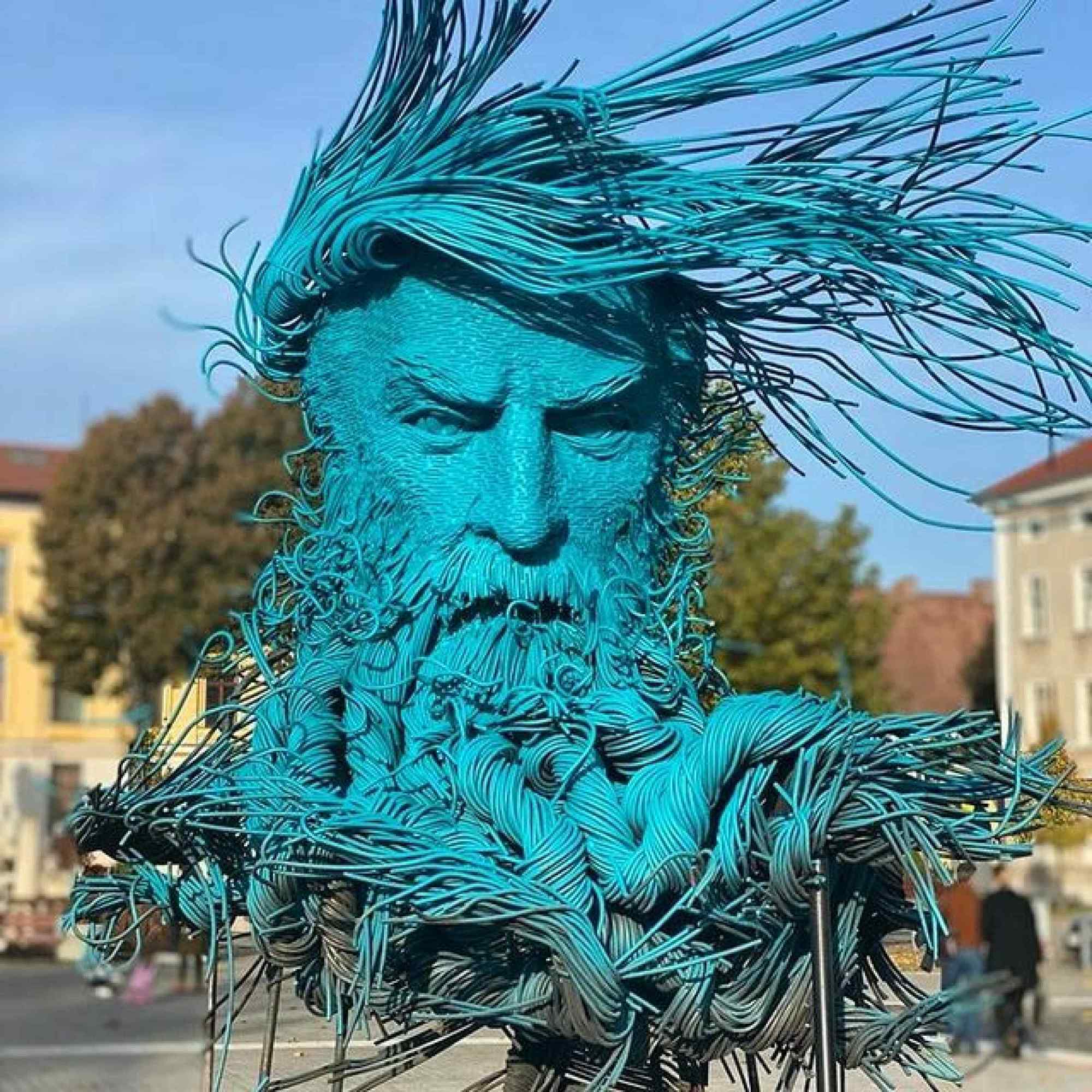 Darius Hulea est un sculpteur impressionnant : ses œuvres mastodontesques sont créées à partir de fils de fer mis en forme avant d’être soudés les uns aux autres. Le résultat, ce sont des portraits en 3D gigantesques.