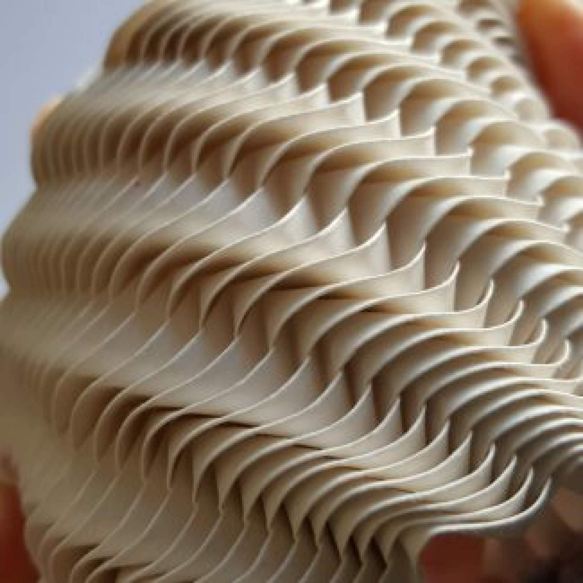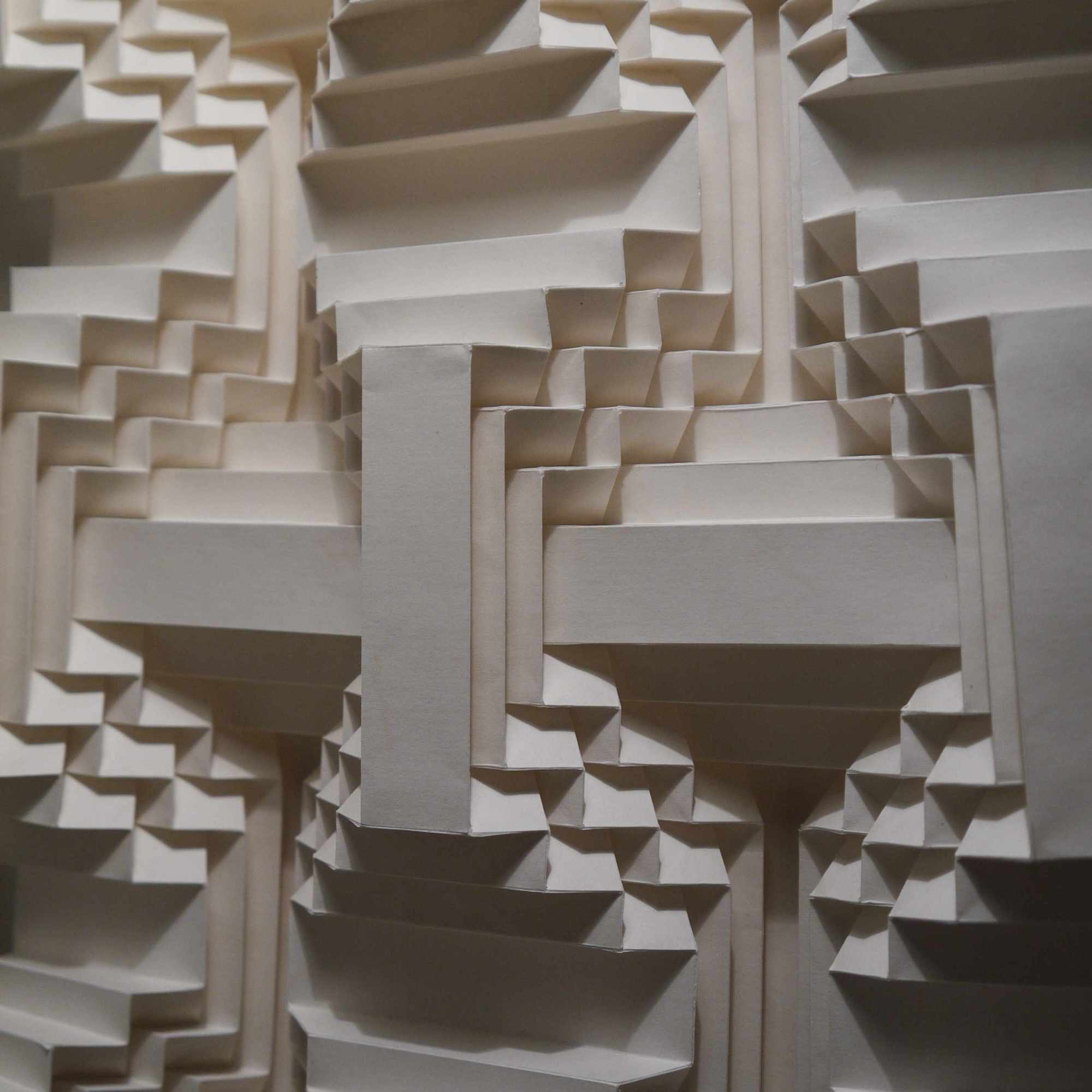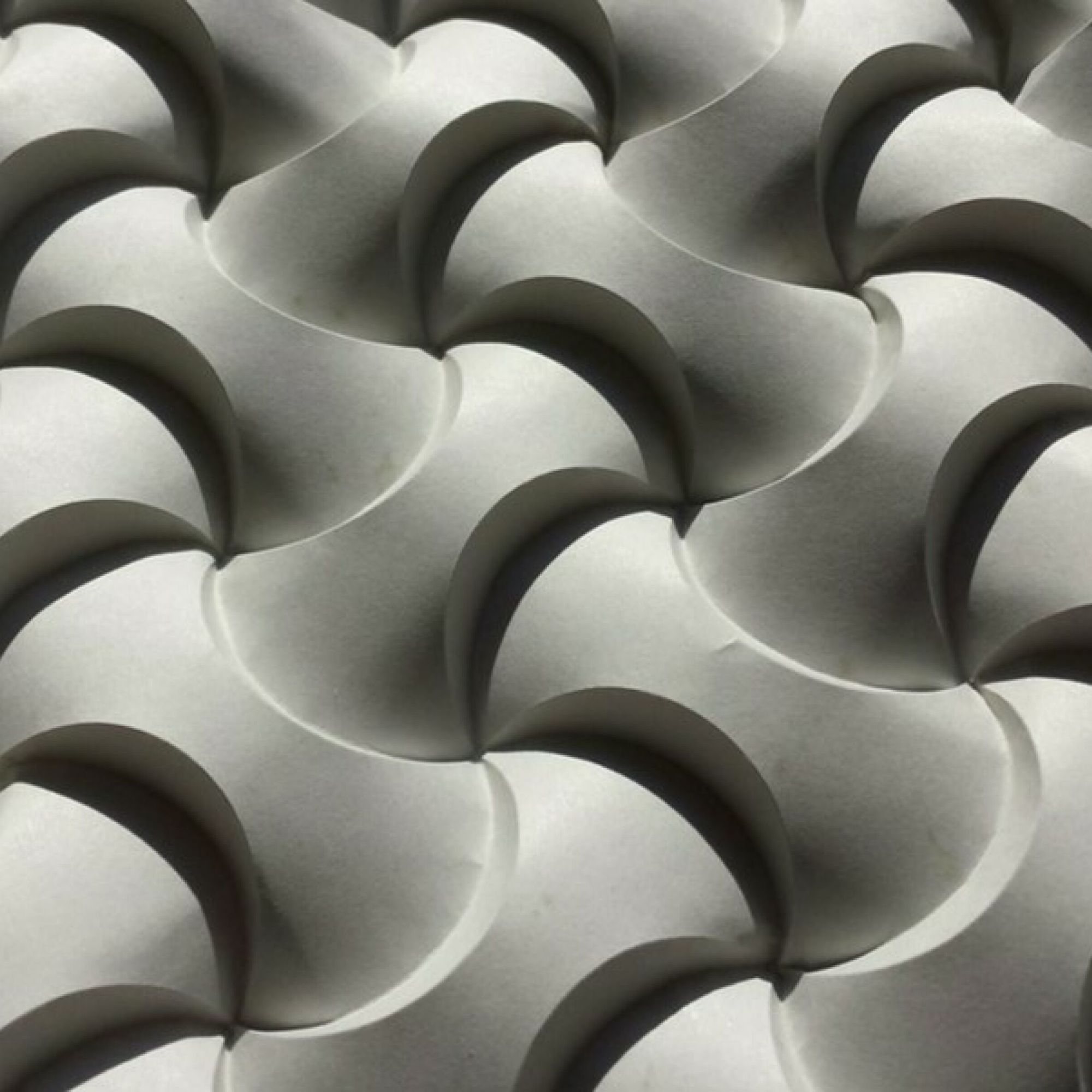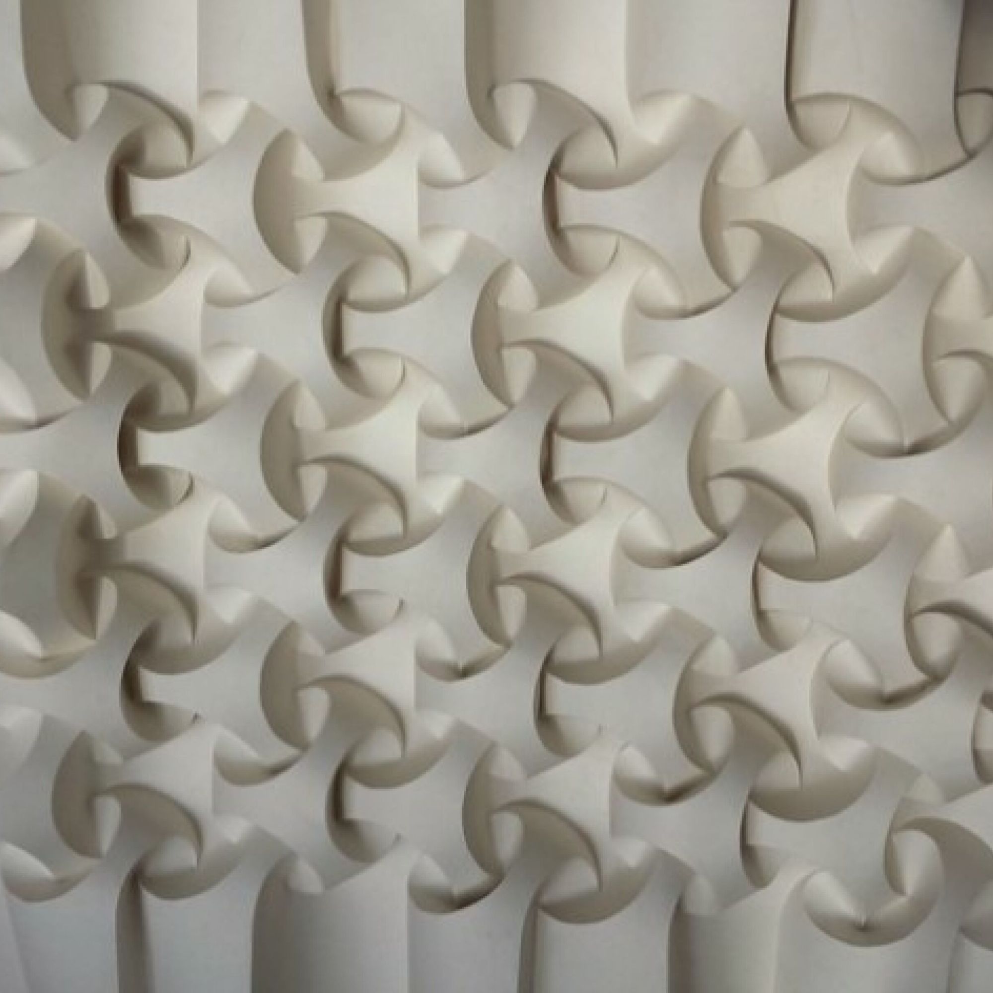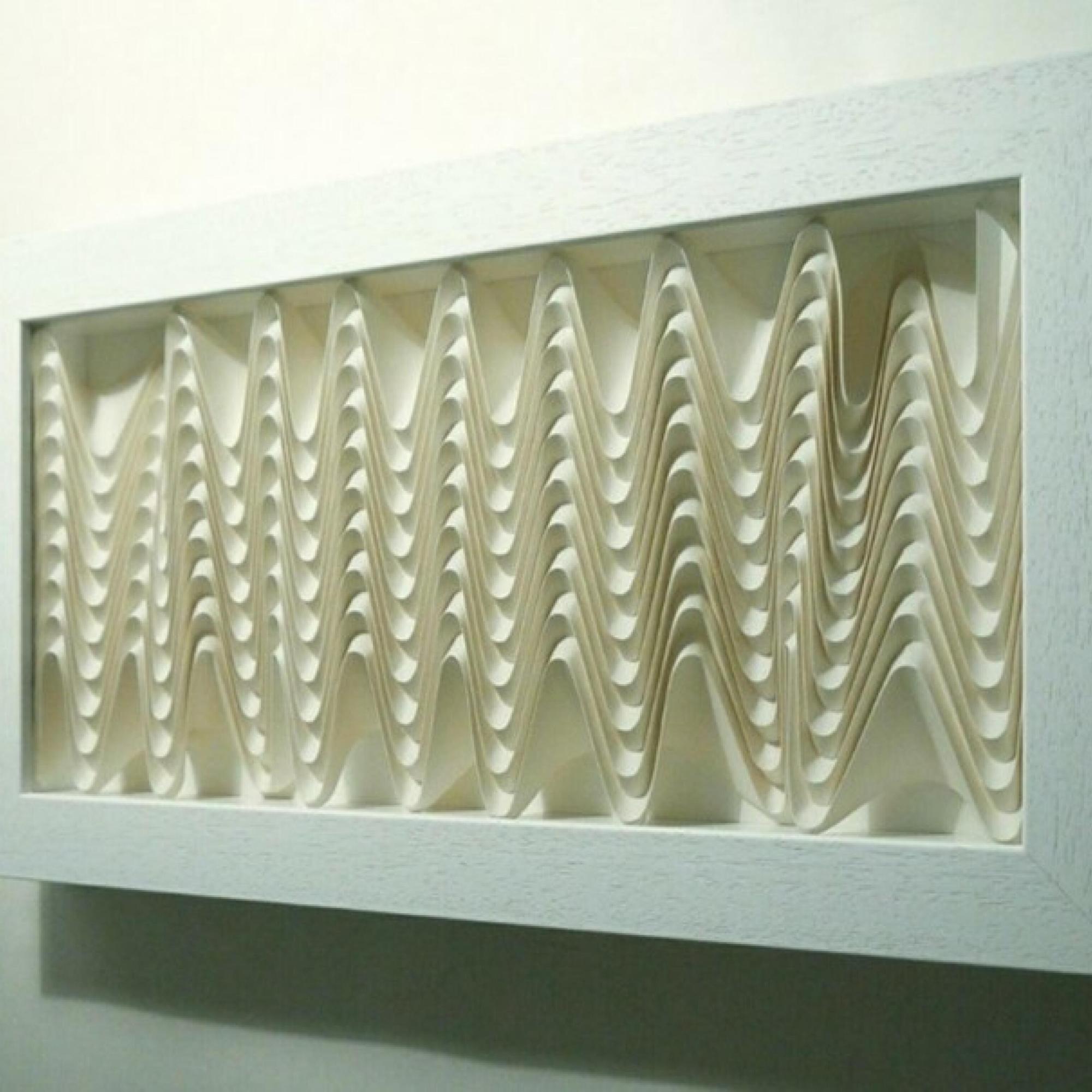 Ses travaux suivent les règles classiques de l’origami : pas de découpage, pas de colle, rien que des plis. Le résultat, une série follement sensuelle où elle sculpte obsessionnellement des bouches, qui semblent apparaître comme par hasard au milieu du papier froissé. Une autre de ses séries est particulièrement impressionnante : beaucoup plus géométrique, elle répète le même motif des dizaines, des centaines de fois, créant des modèles décoratifs qui peuvent se transformer en s’étendant, comme un accordéon.