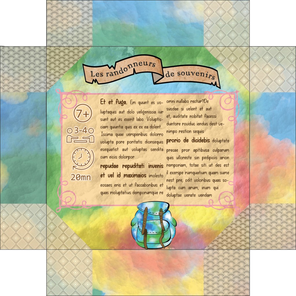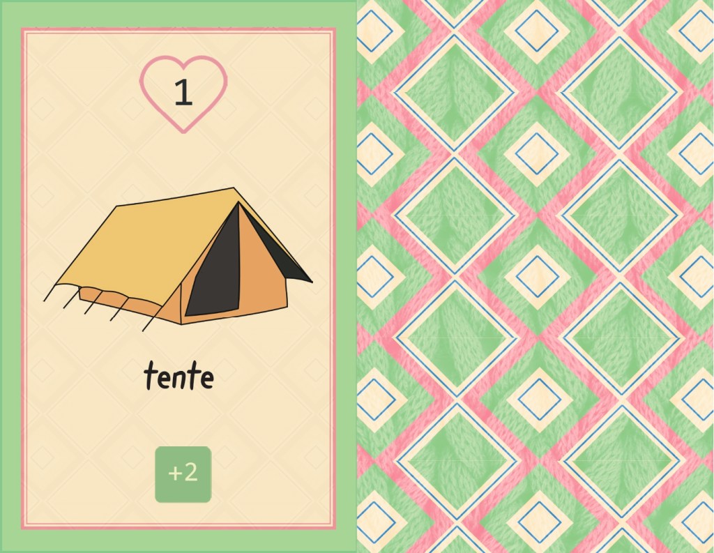 Design de la boite du jeu, des sacs à dos et des motifs seul, conception de l’identité graphique et design des cartes en collaboration avec Mallory Helm.